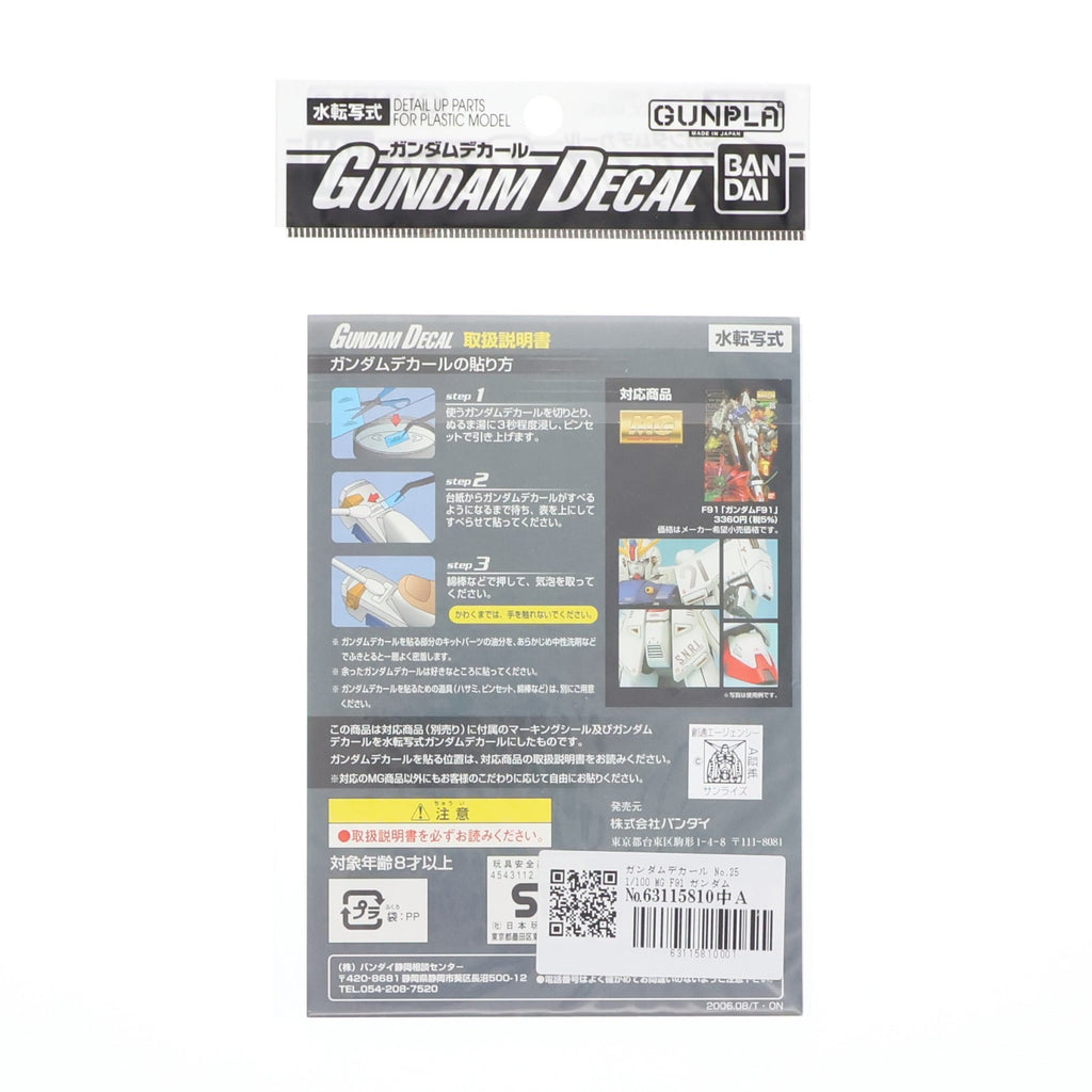 【中古即納】[PTM] ガンダムデカール No.25 MG 1/100 ガンダムF91用 機動戦士ガンダムF91 プラモデル用アクセサリ(0145078) バンダイ(20060809)