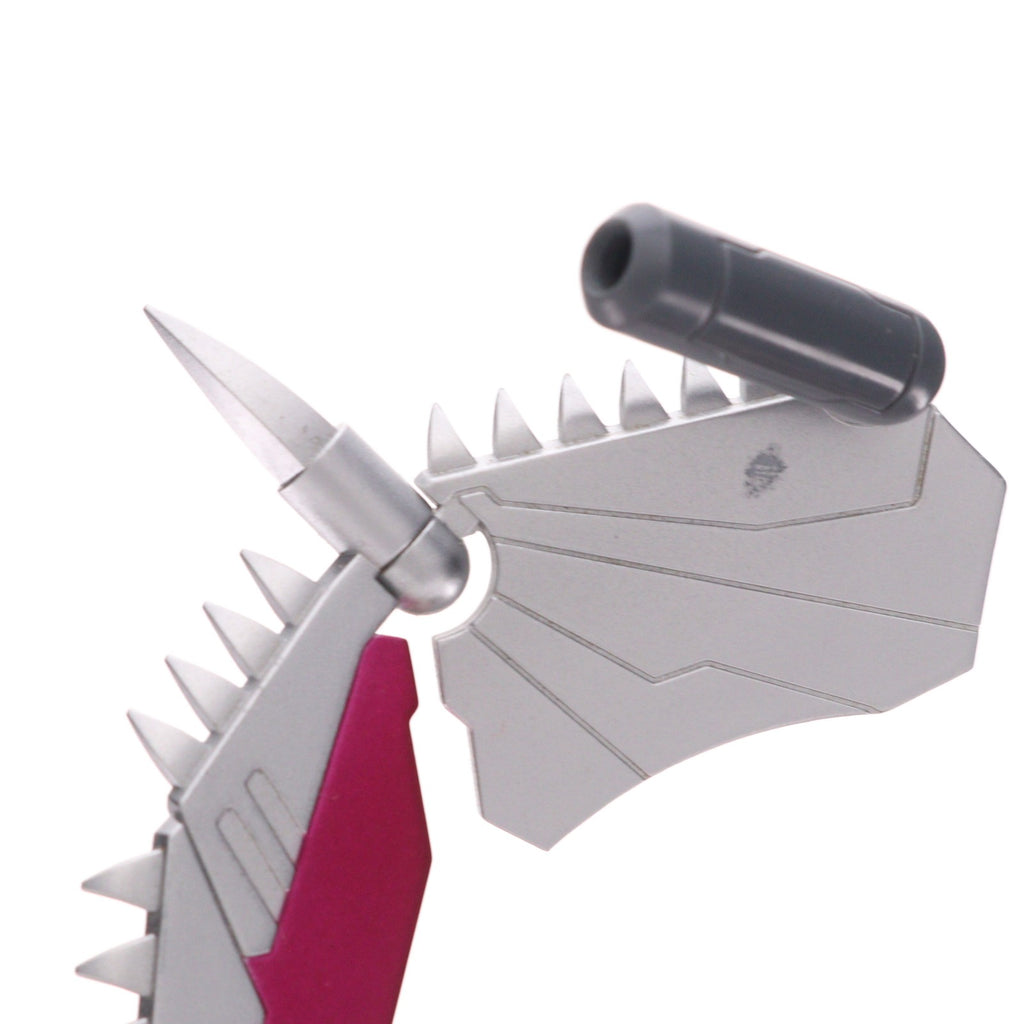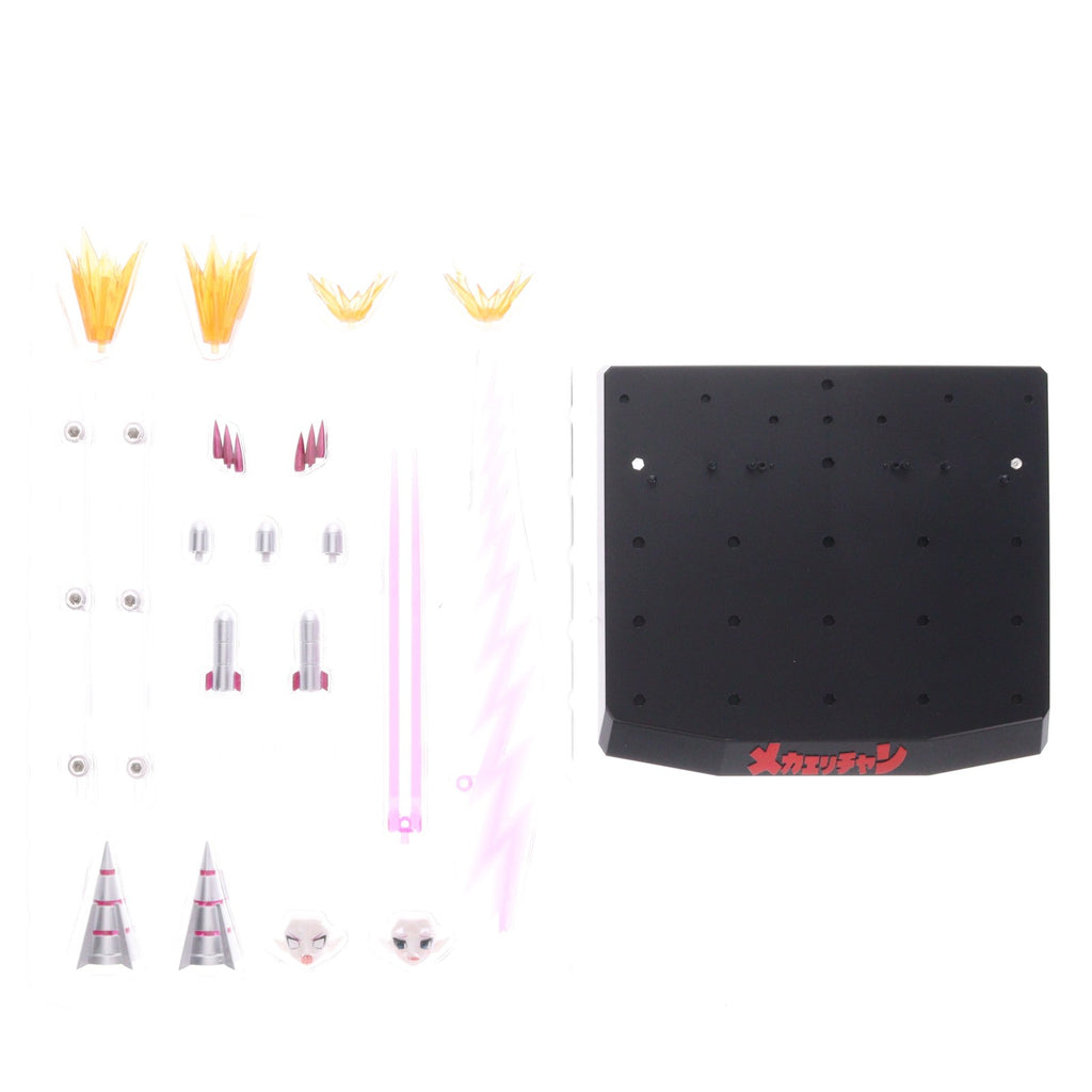 また、劇中のバトルアクションを再現可能な各種武装パーツ、エフェクトパーツが付属する他、本アイテムオリジナルのギミックとして、メカエリチャン自身の装甲や武装パーツを組み合わせることで「鋼鉄魔竜ワイバーン」としてお楽しみいただけます。