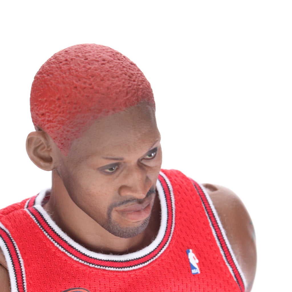 通常の1/6フィギュアとは異なった全高約33センチのボディは、本人の躍動感溢れる肉体美と様々なポージングを可能とした可動域となった、最新技術によるデニス・ロッドマン専用素体を採用。