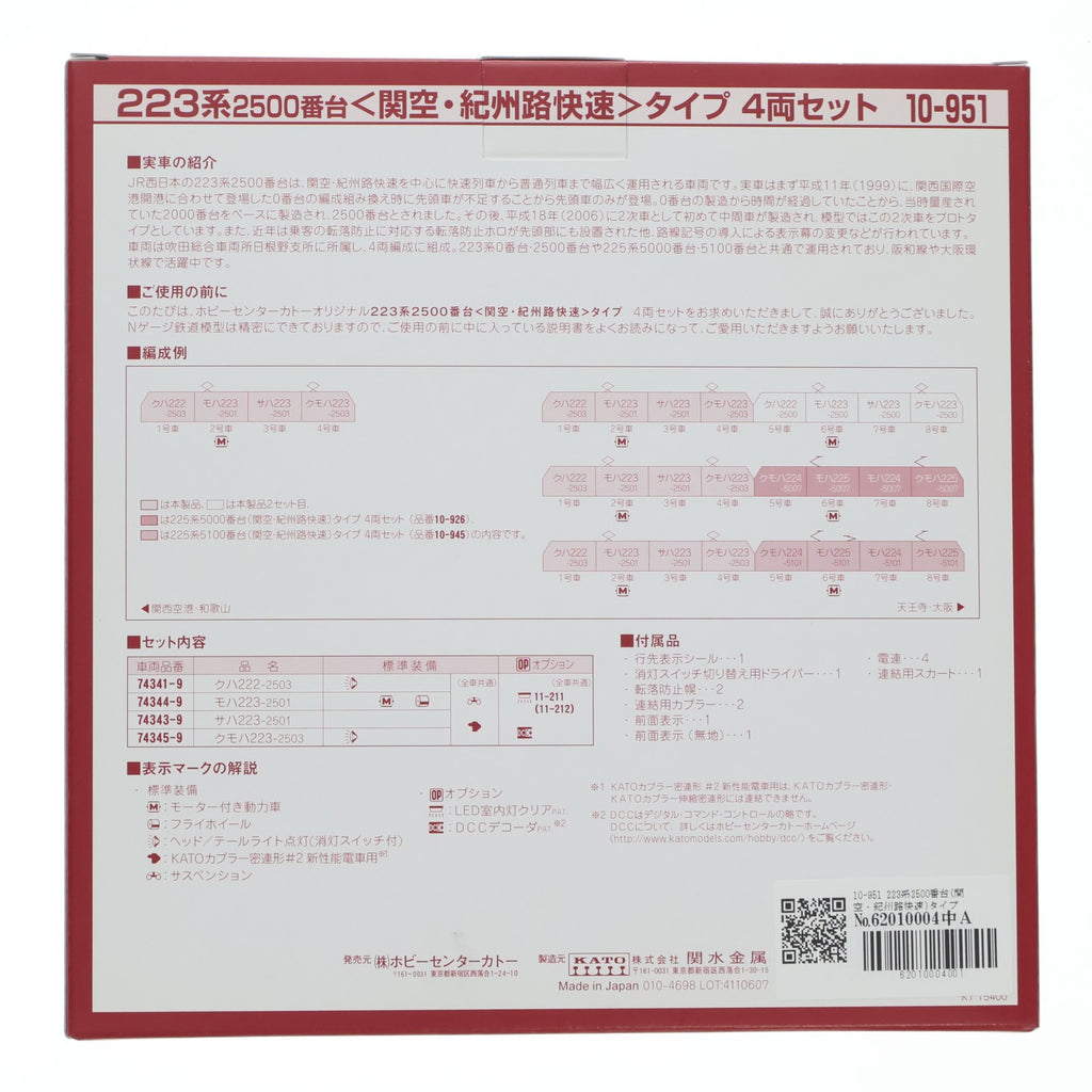 ■タイトル:10-951 223系2500番台(関空・紀州路快速)タイプ 4両セット(動力付き) Nゲージ 鉄道模型 KATO(カトー)