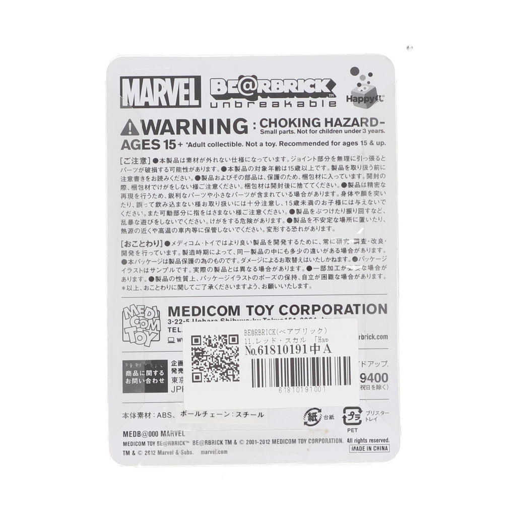 【中古即納】[FIG] BE@RBRICK(ベアブリック) 11.レッド・スカル 「Happyくじ MARVEL×BE@RBRICK」 ベアブリック賞 アベンジャーズシリーズ フィギュア サニーサイドアップ(20120629)