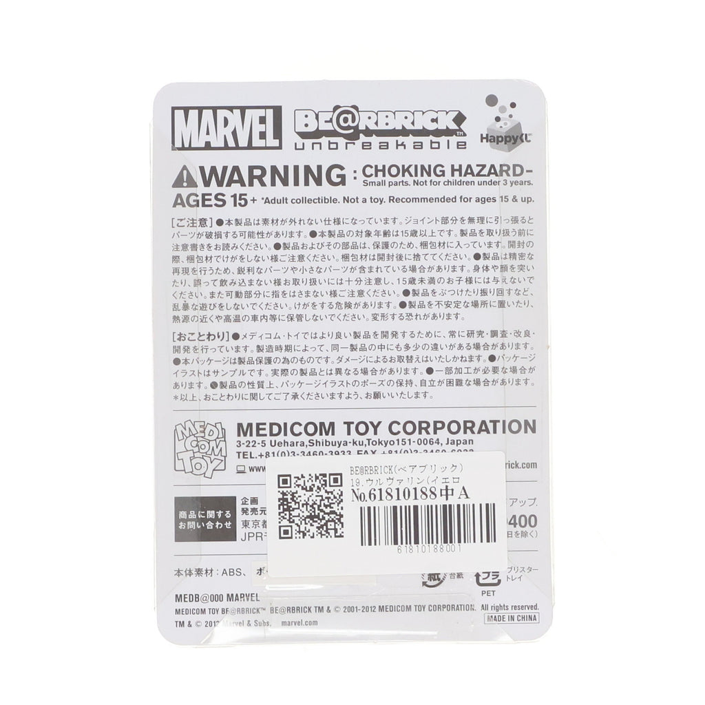 【中古即納】[FIG] BE@RBRICK(ベアブリック) 19.ウルヴァリン(イエローVer.) 「Happyくじ MARVEL×BE@RBRICK」 ベアブリック賞 X-メンシリーズ フィギュア サニーサイドアップ(20120629)