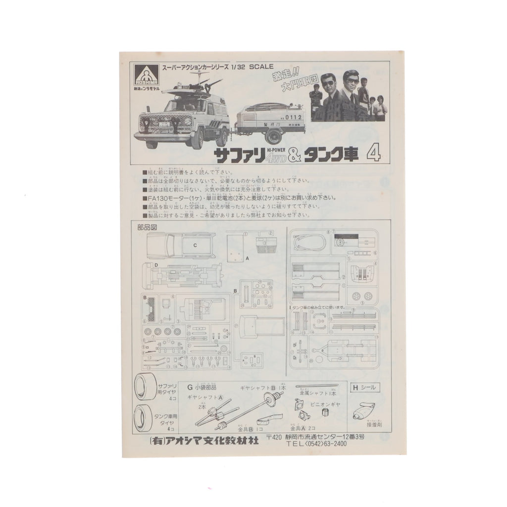 ■タイトル:スーパーアクションカーシリーズ No.4 1/32 ニッサン 待機車 サファリ HI-POWER 4WD&タンク車 西部警察 モーターライズキット プラモデル(G8-12) アオシマ