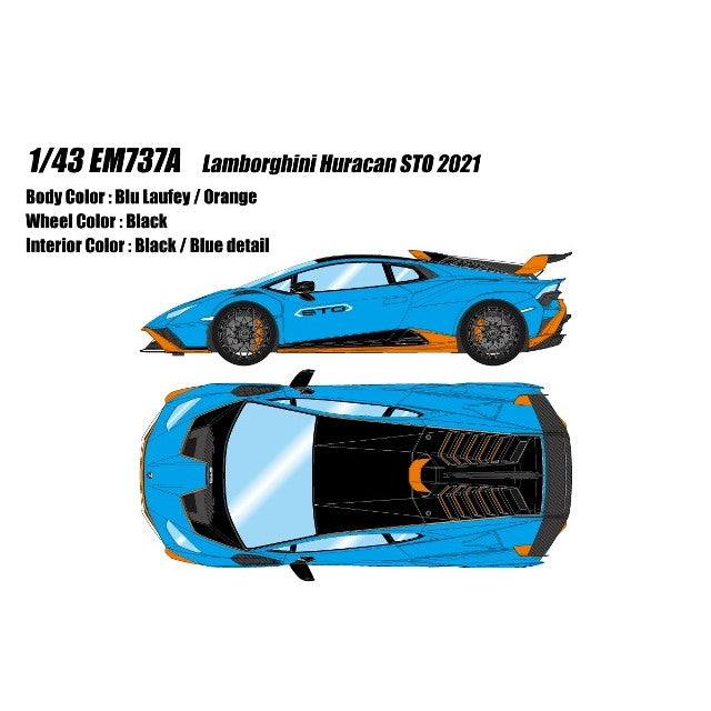 ■タイトル:1/43 Lamborghini Huracan(ランボルギーニ ウラカン) STO 2021 ブルーラウフェイ/オレンジ 完成品 ミニカー(EM737A) EIDOLON(アイドロン)