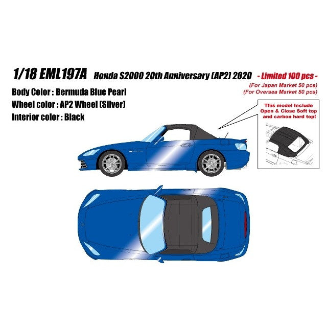 ■タイトル:1/18 Honda S2000 20th Anniversary(AP2) 2020 バミューダブルーパール 完成品 ミニカー(EML197A) EIDOLON(アイドロン)