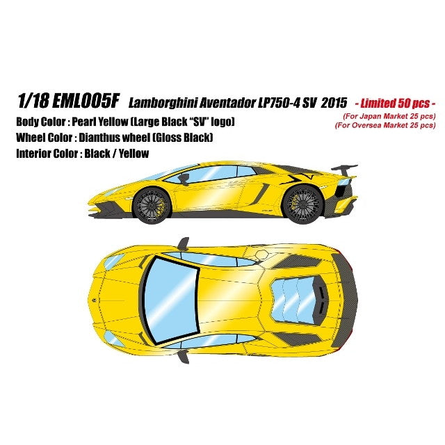 ■タイトル:EIDOLON(アイドロン) 1/18 Lamborghini Aventador LP750-4 SV(ランボルギーニ・アヴェンタドールLP750-4 スーパーヴェローチェ) 2015 ラージブラックSVロゴ パールイエロー 完成品 ミニカー(EML005F) EIDOLON(アイドロン)