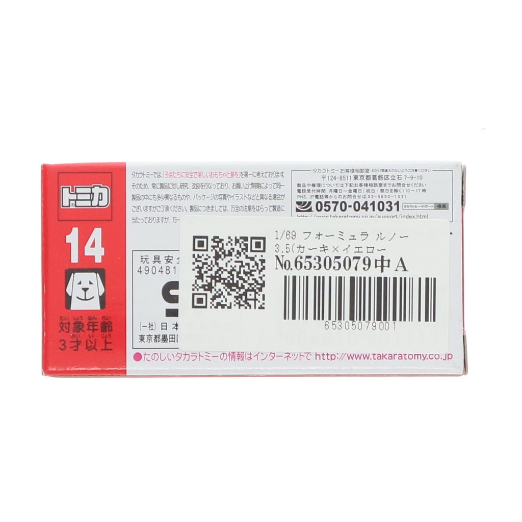 ■タイトル:1/69 フォーミュラ ルノー 3.5(カーキ×イエロー×パープル/赤箱) 「トミカ No.14」 完成品 ミニカー タカラトミー
