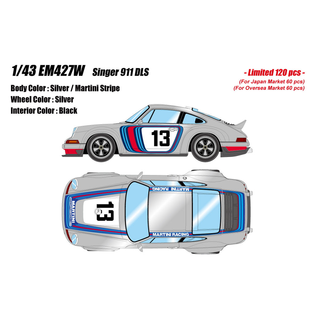 【予約安心出荷】[MDL] 1/43 Singer(シンガー) 911 DLS シルバー(マルティニストライプ) 完成品 ミニカー(EM427W) EIDOLON(アイドロン)(2026年3月)