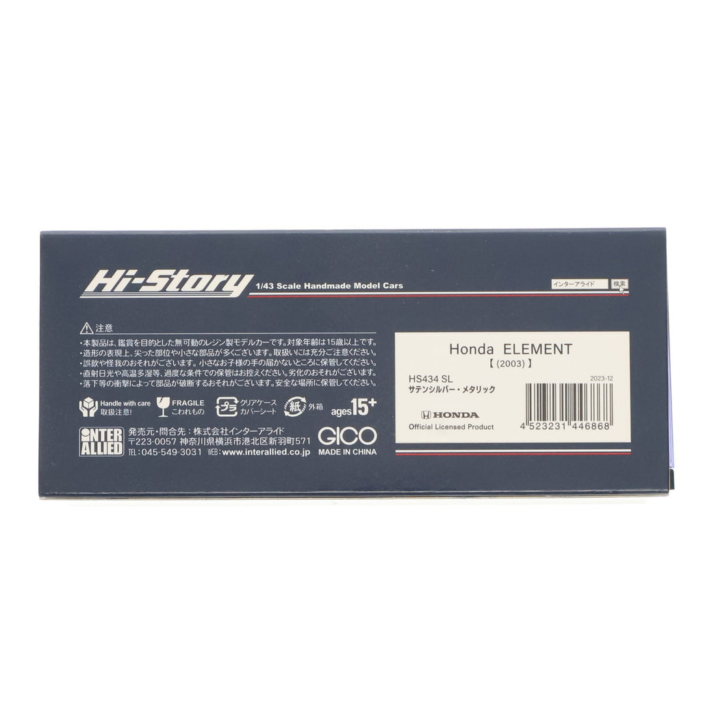 ■タイトル:ハイ・ストーリーシリーズ 1/43 Honda ELEMENT(エレメント) 2003(サテンシルバー・メタリック) 完成品 ミニカー(HS434SL) ハイストーリー