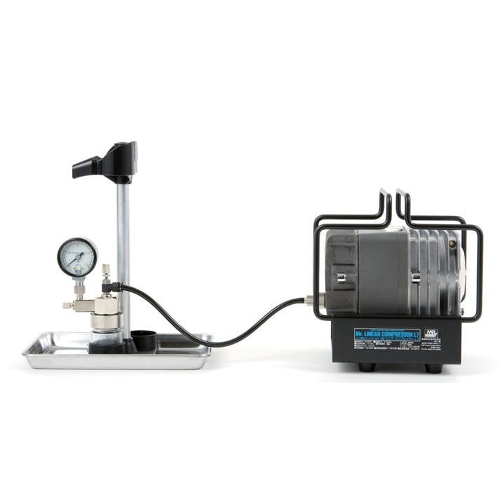 余裕の風量のリニアコンプレッサーL7に、圧力計のついたMr.エアーレギュレーターを組み合わせたセットです。