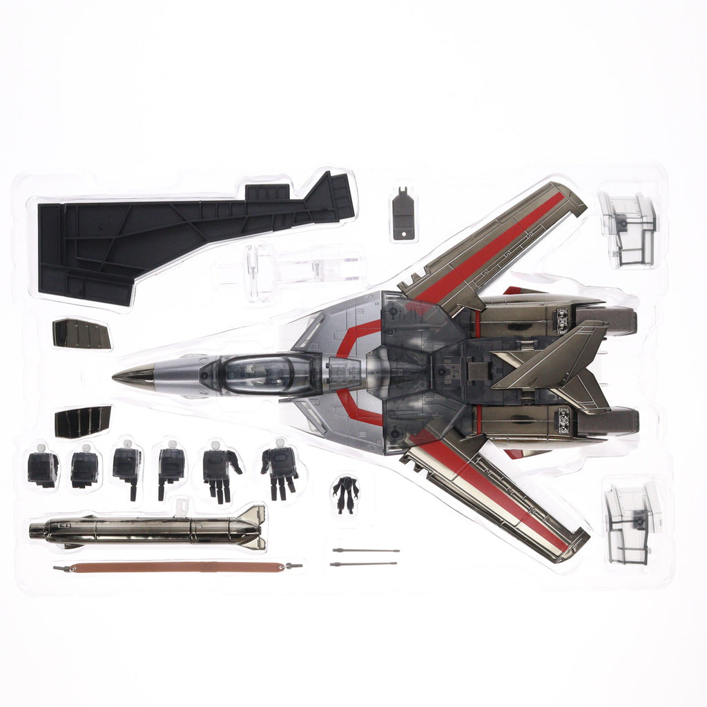 超合金50周年記念商品、DX超合金からVF-1Jバルキリーを往年のアイアンタイプをイメージしたガンメタやブラックメッキ、スモーククリアパーツを使用した仕様で商品化。